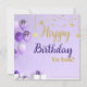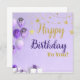 Celebre los cumpleaños con estilo con este elegante diseño de cumpleaños con tema púrpura y dorado. Con estrellas doradas brillantes, globos festivos y tonos púrpura lujosos, esta tarjeta crea el ambiente perfecto alegre y moderno. Ideal para enviar deseos de cumpleaños sinceros o decorar invitaciones. Una mezcla perfecta de sofisticación y diversión para hacer que cualquier cumpleaños sea extra especial.