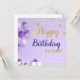 Diseño de tarjeta de cumpleaños en púrpura y dorad