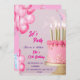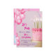 Un elegante diseño de invitación a fiesta de cumpleaños con tema rosa y dorado. El centro de atención es un hermoso pastel rosa decorado con velas doradas y sprinkles en forma de estrellas. Los globos de acuarela rosa añaden un toque festivo, mientras que el texto resalta el tono de celebración con fuentes elegantes. Perfecto para una celebración de cumpleaños número 13.