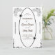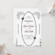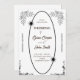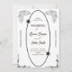 Esta tarjeta de invitación a la boda presenta un diseño clásico en blanco y negro con elegantes bordes florales en cada esquina. El espacio central se ve resaltado por un elegante borde ovalado que añade un toque de sofisticación al diseño general. Esta invitación es perfecta para una temática tradicional y atemporal del boda.