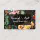 M Haverman, un pintor holandés de flores, es la inspiración de esta moderna tarjeta de visita. Su pintura aparece en la parte delantera con un overlay de terciopelo negro para resaltar el texto. Revertir es una sublimación con tinte rojo y detalles en texto blanco.