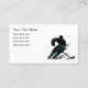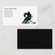 Cartas de negocios de deportes temáticos de hockey diseñadas con una gráfica de acción de un jugador de hockey en el fondo de esta simple tarjeta de llamada editable. Funciona para un agente deportivo, scout, team o player.