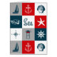 Diseño de temática náutica con decoración marina y acuática en cuadrados blancos, rojos, azules y grises impecables