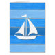 Diseño de temática náutica con decoración de velero sobre fondo azul rayado y gris de madera. Tenga en cuenta que esto no está hecho de madera, es una impresión gráfica de madera.