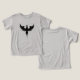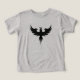 Esta es una camiseta gris claro con un diseño de fénix de estilo tribal negro con alas estiradas. El fénix tiene una corona en la cabeza, dándole un aspecto regal y poderoso. El diseño se centra en el área del pecho, lo que lo convierte en una atrevida pieza de declaración. La camiseta parece estar hecha de un tejido suave, probablemente algodón o una mezcla de algodón, y está en forma de niños o de unisexo.