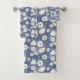Sencillo patrón elegante de flores negras blancas sobre un fondo azul. El cuarto de baño es nuevo. Colores de Benjamin Moore.