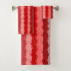 Este juego de toallas tiene un diseño moderno a rayas en varios tonos rojos. ¡Sin tiempo, toallas de moda para todos! También una idea de regalo de bonito para cualquier ocasión.