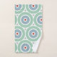 Toalla de playa moderna y fresca en agua, azul, gris, verde y rojo. Un bonito diseño de inspiración náutica para alegrar la decoración o el regalo de tu casa.