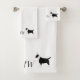 El juego de toallas de baño con un diseño de perro que se puede personalizar con cualquier texto de su elección. Si necesita ayuda para personalizar, póngase en contacto con nosotros a través del enlace de esta página. Diseño de toallas por justbyjulie