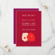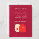 Este personalizable salva la tarjeta de fecha muestra dos formas orgánicas circulares unidas en rojo y crema, simbolizando el amor, la pareja y el matrimonio. El fondo es de color burdeos y se inscriben las siguientes palabras: "guardar la fecha", los nombres de la pareja, la fecha y el lugar del boda y la "invitación a seguir". La parte posterior tiene el mismo ilustracion, que se puede modificar.