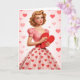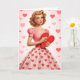 Envía un poco de romance a la antigua con esta encantadora tarjeta de felicitación vintage de San Valentín con ilustración de chica pin-up. Con una clásica ilustración inspirada en la década de 1950 de una mujer glamorosa con un vestido rosa con estampado de corazones, sosteniendo suavemente un corazón de San Valentín con lunares, este diseño captura la feminidad atemporal y el amor nostálgico.