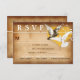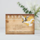 bonito diseño de rsvp con dos aves amorosas - palomas, símbolo amarillo del corazón y composición envejecida de fondo.