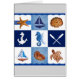 Diseño original pintado con acuarela de Sandra Gale, con bloques de dibujos de temática náutica como estrellas de peces, anclas, barcos, tortugas y conchas. Excelente diseño para el verano, casas de playa, bungalows o para todo aquel que ame la playa, el océano o el pescado.