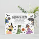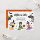 Esta divertida invitación para una fiesta de Halloween presenta 5 niños dibujados a mano con disfraces (un superhéroe, bruja, dinosaurio, princesa bailarina y tiburón). Otros pequeños acentos incluyen murciélagos, estrellas, dulces, arañas y una pequeña calabaza. La parte trasera de la tarjeta contiene un patrón de puntos sobre un fondo naranja. Para solicitudes de diseño personalizado o productos, por favor contáctame (Tracey) en orabellaprints@outlook.com.