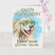 Carta de retiro alegre, moderna y agradable, con un humorista dorado en una playa tropical. Diseño original creado de una de nuestras acuarelas pintadas a mano.