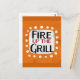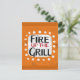 "Fire Up The Grill" es un divertido diseño de texto con una forma de acento blanco rodeado de puntos de textura caprichosos.