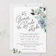 Esta suaves ducha azul polvorienta te da la opción de quedarse un rato y visitar o manejar con la novia. Se puede utilizar como invitación a la ducha nupcial Drive By Bridal o como Invite a la ducha de novia al aire libre. La invitación está enmarcada por suaves tonos de flores azules y ramas verdes naturales.