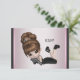 RSVP, princesa diva, con una adorable diva pequeña que usa un vestido negro de bonito y tiara con un fondo rosado y negro. Agregue sus detalles al frente y/o al reverso agregando los detalles del evento, el estilo de fuente, el tamaño y el color del tipo de letra y la redacción. También puede eliminar el fondo negro para añadir su propio color.