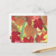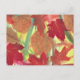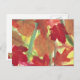 En las postales se imprimió un colorido y divertido cuadro de hojas de otoño sobre un fondo pastel abstracto.
