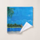 Una pareja feliz corriendo en una playa tropical en Hawaii por una palmera de coco. Un bello día al sol ¡Qué diversión! Un momento memorable que hace un regalo memorable para cualquiera que le guste colgarse en la playa o que simplemente quiera irse!