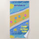 Toalla de playa divertida, colorida con chispas, agua, playa y sombrillas. Diversión en el Sol con texto personalizado.