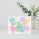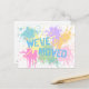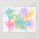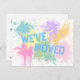 Una pintura de aerosol colorida y caprichosa salpicada con "nos hemos mudado" postal para enviar a amigos y familia en pasteles de bonito! Personalizable de texto para información de dirección