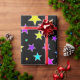 Esta diversión, características del diseño multicoloras un modelo de las formas de la estrella de diversos tamaños y coloreadas una variedad de colores en un fondo negro.