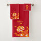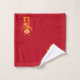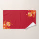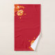 Sistema personalizado robot de la toalla del cuarto de baño de la diversión del rojo anaranjado de los niños. El Washcloth, la toalla de mano, y la toalla toda del cuerpo tienen fondos rojo oscuro con los robots locos anaranjados brillantes que enarbolan hacia fuera de las esquinas. Personalice con nombre en la toalla del cuerpo. Diseño temático del robot de la ciencia ficción para los niños. www.SamAnnDesigns.com