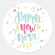Celebra el año nuevo con este pegatina festivo y colorido de Año Nuevo Feliz. Este pegatina festivo cuenta con letras a mano, puntos de polka, estrellas y garrapatas.
