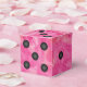 El fondo de color de agua rosa representa esta caja de regalo de la fiesta de diseño de dados de maravilla. Perfecto para eventos temáticos de Bunco, Casino o Vegas.