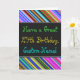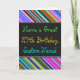 Este divertido, colorido y caprichoso diseño de tarjetas de felicitación con temática de cumpleaños presenta un cálido deseo de cumpleaños como "¡Ten un gran cumpleaños, nombre Personalizado!" en la parte delantera. El nombre en la parte delantera se puede personalizar. La parte superior e inferior de la parte delantera presenta un patrón de rayas multicolor y vibrante. El interior incluye un mensaje de cumpleaños de personalizable. Una tarjeta de felicitación como esta podría ser una manera divertida de entregar deseos de cumpleaños a alguien que está celebrando su vigésimo cuarto cumpleaños. [~Z0000269]