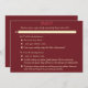 Un rico color marsala terroso, divertido, personalizado, elegante, tarjeta de invitación de respuesta de boda personalizada simple, con razones divertidas y hilarantes que deben ser marcadas por sus invitados, sobre por qué asistirán o no a la boda. Personalice la tarjeta con la fecha de su boda, fecha de respuesta, y nombres de la novia y el novio. Una respuesta divertida, hilarante, humorística para todos sus amigos y familiares. Una invitación divertida para que la novia y el novio envíen como pareja.