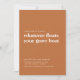 Si te encantan los neutrales, esta simple invitación al estilo es correcta para ti. La invitación presenta un diseño elegante, con un fondo naranja suave y quemado. En el centro, los detalles del fiesta están bellamente redactados en un texto blanco que exuera un aire de sofisticación. El gracioso texto "lo que sea que flote tu bote de salsa" les dará a tus invitados una risita antes de que siquiera aparezcan. Bienvenido a tu fiesta de Acción de Gracias. El color de fondo y el texto son editables.