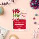 La divertida invitación del partido de Navidades HO HO HO HO Retro, presenta una tipografía retro escrita a mano "HO HO HO HO" con personajes de dibujos animados de Navidades: Santa claus, hombres de nieve y oso de peluche, aislados en un fondo rojo con copos de nieve blancos. *** Haga clic en el botón de edición/personalización para personalizar de este diseño con su texto o nombre personal. Felices fiestas!