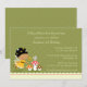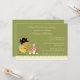 Esta adorable fiesta de cumpleaños de las niñas 5x7 tiene un tema de hadas. Hay un hada afroamericana volando con una flor cerca de algunos champiñones con un pequeño ratón encima de ellos. El fondo es de color verde oliva con polkadots. La parte inferior tiene un borde de vieiras color crema con una franja rosa. Copyright © Diseños Zenware