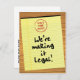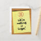 Divertida tarjeta de anuncio - Nos estamos casando con una libreta de notas en el fondo. Personaliza toda la información en el reverso para tu anuncio de boda.