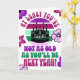 Divertido, al menos no eres... tarjeta de felicitación doblada. Una tarjeta de cumpleaños divertida con torta de cumpleaños de silueta frente a un patio trasero retro en morado, cereza, verde menta, verde esmeralda y rosa pálido. El nombre del pastel es, por supuesto, personalizable. El saludo de la parte delantera de la tarjeta dice: "¡Al menos no eres tan viejo como lo serás el próximo año!" Dentro del mensaje dice "Feliz Cumpleaños" que también es personalizable.