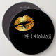 El botón divertido con los falsos labios de oro en un fondo negro que muestra un beso y en blanco el texto "me besa que soy magnífico". ¡Grande llevar en un fiesta del bacherlorette!