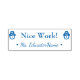Este positivo diseño de sellos de goma incluye el inspirador mensaje "¡Buen trabajo!" y un nombre personalizado para el tutor. También cuenta con iconos decorativos de muñecos de nieve. Podría ser utilizado por un profesor de escuela, educador o tutor cuando califica el trabajo de un estudiante, para reconocer que un estudiante ha hecho un trabajo excepcional.