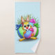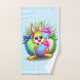 Caricatura divertida y dulce de parranda de caricatura de conejo de Pascua mordiendo un huevo decorado. Original Digital Art Copyright BluedarkArt.