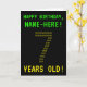 En la parte delantera de este diseño de tarjetas de cumpleaños geek y personalizado se incluyen los mensajes "FELIZ CUMPLEAÑOS" y "¡7 AÑOS!", junto con un nombre de destinatario editable. Los mensajes en el frente tienen una mirada inspirada en videojuegos clásicos pixelados. El número "7" en la parte delantera consta de dígitos "7" de tamaño más pequeño, con un aspecto inspirado en el arte ASCII. El interior incluye un mensaje de bienvenida de cumpleaños de personalizable. Una tarjeta de felicitación de cumpleaños personalizada de estilo nerdy, como esta, podría ser una forma tonta de celebrar el séptimo cumpleaños de alguien. [~Z0000366]