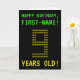 En la parte delantera de este diseño de tarjetas de cumpleaños nerdy, editable, aparecen los mensajes "FELIZ CUMPLEAÑOS" y "¡9 AÑOS DE EDAD!", junto con el nombre del destinatario del personalizable. Los mensajes en el frente tienen una apariencia inspirada en videojuegos clásicos pixelados. El número "9" en la parte delantera está compuesto por dígitos "9" de tamaño más pequeño, que le dan un aspecto inspirado en el arte ASCII. El interior incluye un mensaje de bienvenida de cumpleaños que se puede personalizar. Una tarjeta de felicitación de cumpleaños personalizada de estilo geeky como esta puede ser una manera especial de enviar deseos de cumpleaños a alguien que celebra su noveno cumpleaños. [~Z0000366]