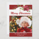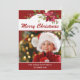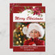 Esta hermosa tarjeta de fotografía navideña incluye ricos poinsettias de color rojo y "Feliz Navidad" en escritura moderna de tipografía. Personaliza tu foto y saludo favoritos. El lado inverso de la tarjeta presenta un fondo rojo con acentos florales. Reemplace la foto de ejemplo con la suya propia. Diseño ©Rosalind Moore, Diseños de los carriles de cerezo