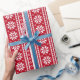 Funny Navidades feas suéter papel de envolver. Color de fondo personalizable es rojo. Breve gota para Navidad. Diversión para hombres, mujeres y niños.