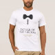 Estas divertidas camisetas están diseñadas como favores o regalos para el padre del novio. La camiseta es blanca y tiene una imagen de una corbata de arco negro y tres botones. El texto dice Padre del Groom, y tiene un lugar para el nombre de la pareja boda y la fecha boda. Excelente adición a una bolsa de boda.
