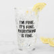 Graciosos hombres de pan de jengibre en parodia, burla, a los conejos conejitos que dicen "Me duele el culo". Estas tres divertidas galletas de pan de jengibre con burbujas de habla. El primer hombre de jengibre tiene un mordisco en la pierna y dice: "¡Mi pierna duele!", el otro tiene un mordisco en la oreja y dice: "¿Qué?", se han comido los ojos del tercero y dice: "¿Dónde están?". Especialmente divertido para la temporada navideña de los Navidades. personalizado de pan de jengibre. Un lado dice que está bien. Estoy bien. Todo está bien. Excelente después del duro año que hemos estado teniendo en 2020 con la pandemia del coronavirus / COVID-19.