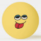 Esta bola de los tenis de mesa tiene una cara en ella que esté pegando hacia fuera su tounge. Es una de una variedad de bolas de ping-pong aquirable de Superkalifragilistic.