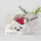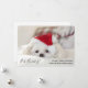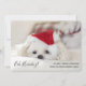 Tarjeta de felicitación divertida de Navidad con una adorable foto de un perrito blanco con un sombrero rojo de Navidad. Este pequeño cachorro parece cansado y aburrido de todas las festividades de Navidad.
