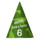 Divertido tema de dinosaurios verdes gorras de la fiesta de cumpleaños para los niños. Un diseño de animales prehistórico divertido para los niños. Personaliza con nombre y edad. Impresión de silueta verde Tyrannosaurus rex.