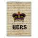 Divertido y gracioso texto "suyo" con un ilustracion de la corona morada en un fondo manuscrito de papel vintage.